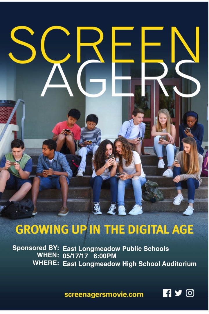 East Longmeadow Public Schools is hosting a screening of SCREENAGERS on May 17, 2017 at 6:00pm at ELHS Auditorium.